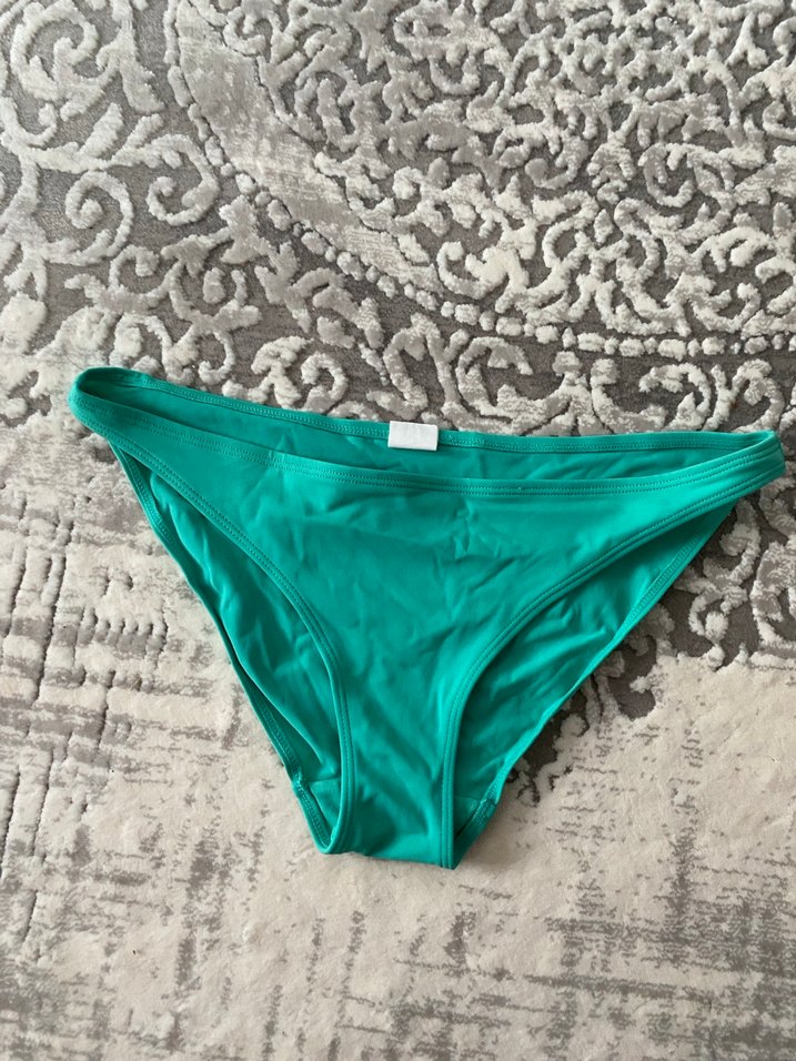 Turkuaz, askılı, vücuda oturan bikini altı. Düz desensiz, plajda şık ve rahat kullanım sağlar.