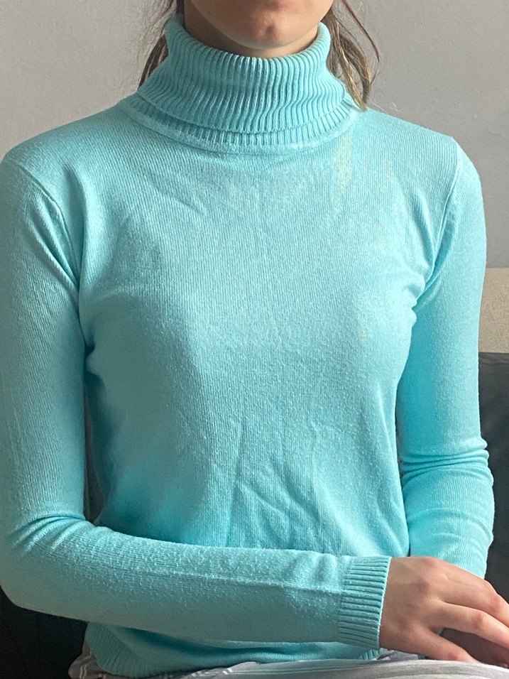 Turkuaz renkli, boğazlı ve uzun kollu ince triko kazak. İnce dokusu ve rahat kesimiyle günlük kullanıma uygun, rahat bir tarz sunar.