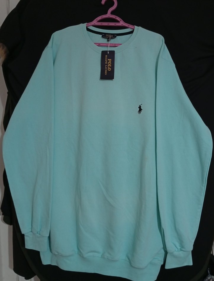 Uzun kollu, yuvarlak yakalı ve bol kesim kadın ya da erkek sweatshirtü. Yumuşak ve sıcak kumaştan, pastel turkuaz renkte, desen içermeyen sade tasarım. Günlük kullanım için uygundur. Unisex ürün hem kadın hem erkek giyebilir