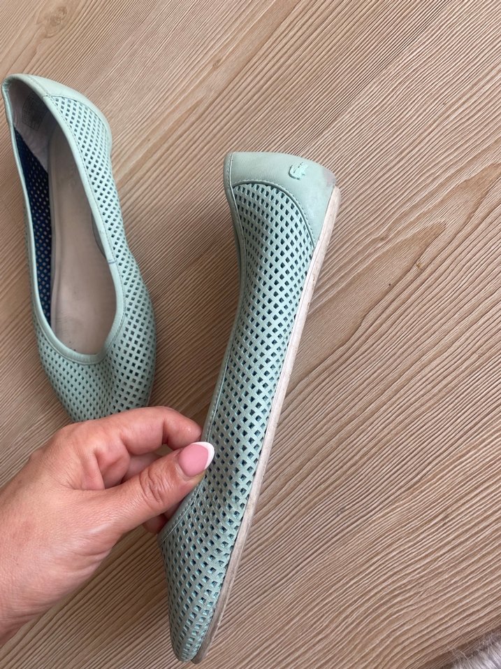 , nilyeşili düz kadın baban Orjinal marka . Deri malzeme ve delikli tasarımıyla gündelik