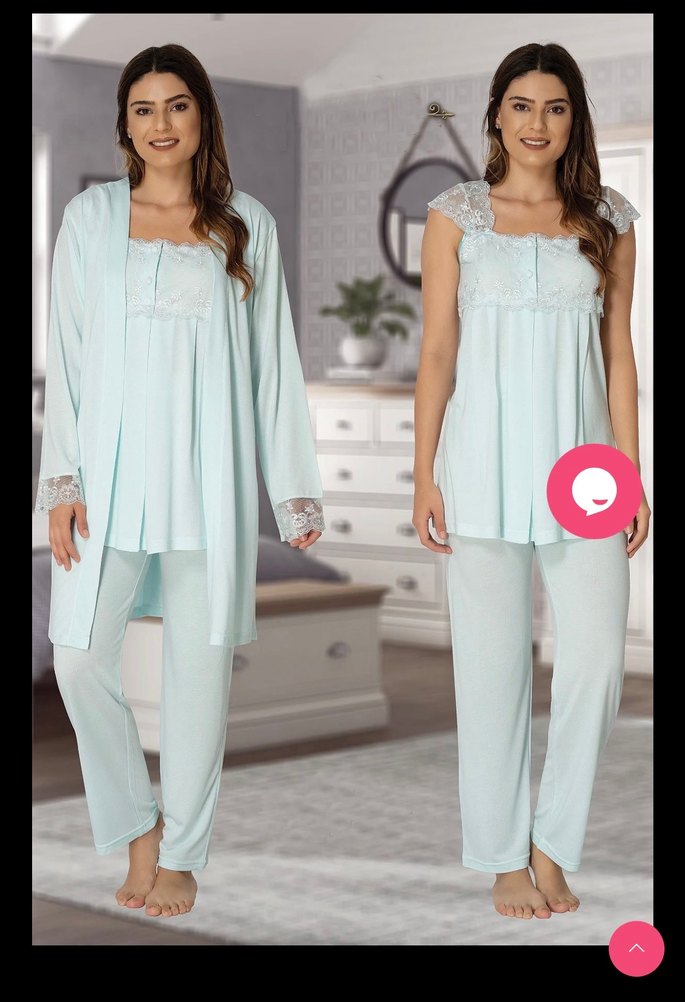 Turkuaz renginde, dantel detaylı kolsuz üst ve pantolondan oluşan bol kesim kadın pijama takımı. Dantel manşetli uzun kollu sabahlık konfor sağlar. EFFORTT 2301 BEBE MAVİSİ DANTEL DETAYLI SABAHLIKLI LOHUSA PİJAMA TAKIMI 2019 İlkbahar - Yaz Sezonu * Belden Ayarlamalı * Kolay Emzirme Özellikli * Pamuklu Kumaştır * Doğum Sonrası Rahatlıkla kullanabileceğiniz modeldir