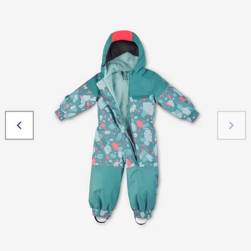 Turkuaz kamuflaj desenli, fermuarlı ve kapüşonlu bebek tulumu, yumuşak ve sıcak kumaştan üretilmiştir. Elastik manşetlerle tam koruma sağlar.