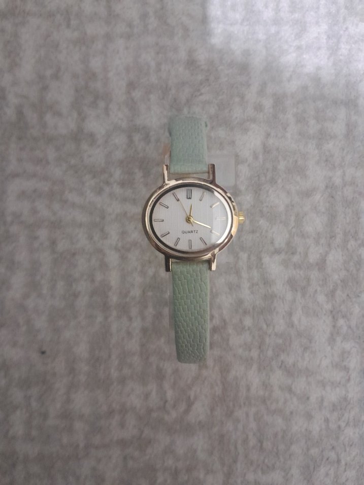 Bu kadın saati, pastel turkuaz kemerli kayışlı minimal bir saat çok kibar sıfır hiç kullanılmamıştır.