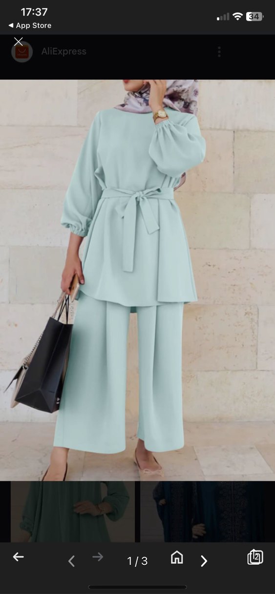 Turkuaz renkli, kemerli ve uzun kesim kadın takımı. Yuvarlak yaka ve askılı kollu, yumuşak sentetik kumaştan üretilmiştir. Ofis ve günlük sokak stiline uygun, minimalist ve desensiz tasarım.