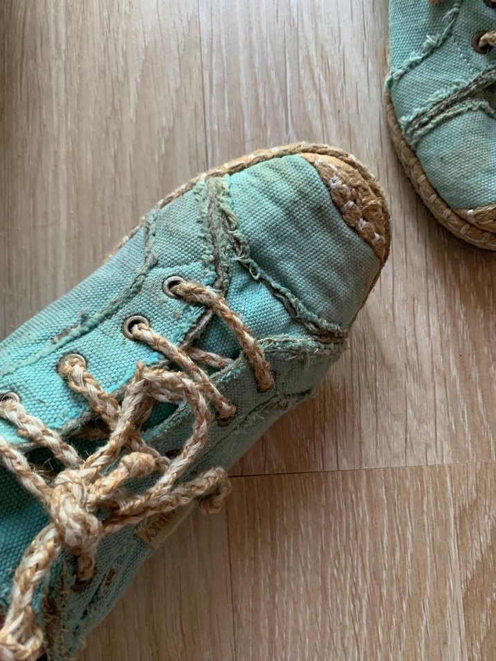 Turkuaz keten ayakkabılar görüntüsü eskitilmiş görüntüde arkadaşlar yoksa 2 kere filan giydim.