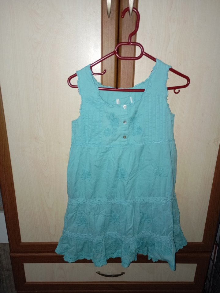 Turkuaz renkli, keten kumaştan, kolsuz çocuk tunik. V yaka ve fırfır detaylı, bol kesim vintage bohem tarzı sunar.
