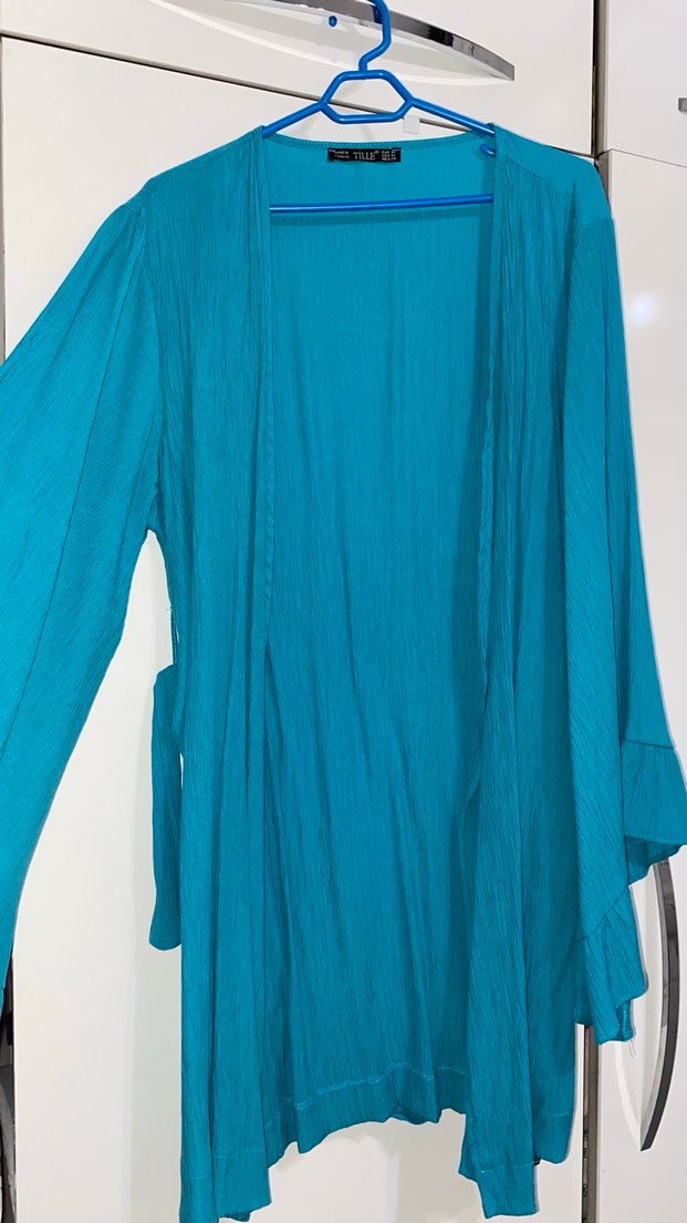 Turkuaz, uzun kol ve bol kesim bohem tarzı kadın sabahlığıdır.