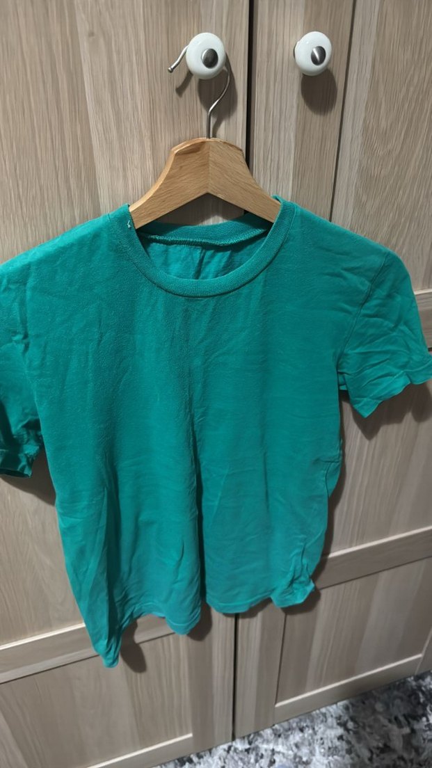 Turkuaz renkli, yuvarlak yaka ve kısa kollu bu tişört, rahat kesimi ve nefes alabilen keten kumaşıyla günlük kullanıma uygundur. Minimalist ve desensiz tasarıma sahiptir.