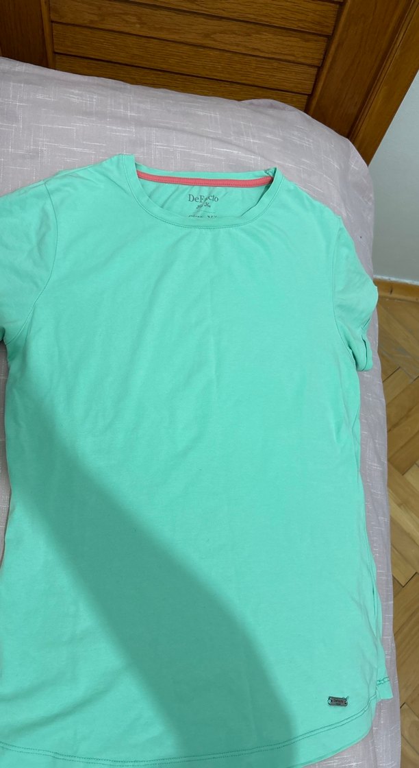 pamuklu, turkuaz renginde, kısa kollu ve bisiklet yaka, sade tasarımlı dar kesim tişört. Sokak modasına uygun Xs-S bedenli kişilere olur