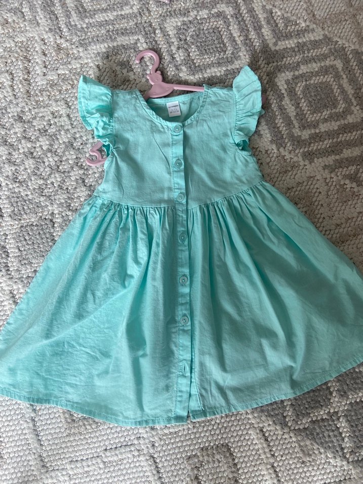 Turkuaz pamuklu kız çocuk elbisesi, kısa fırfırlı kollar ve bol kesim, sade bohem tarzda. yüz pamuk sadece iki kez giyildi yeniden farksız