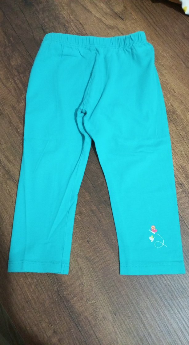 Turkuaz renkli, elastik bel bandına sahip, küçük baskılı detayı olan, yumuşak ve sıcak dokulu kız çocuk taytı. Sokak stili için uygun.