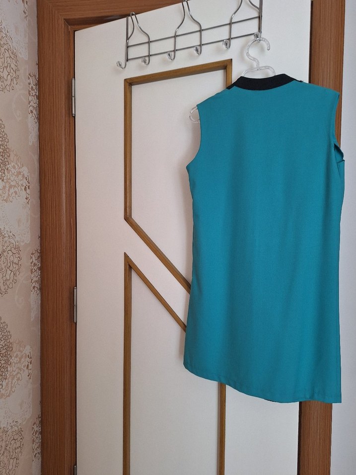 Turkuaz Kolsuz Yüksek Yaka Elbise