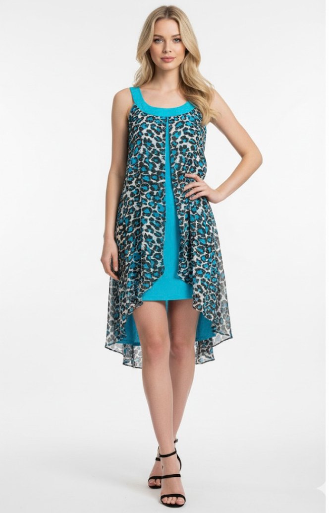 Turkuaz Leopar Desenli Elbise
