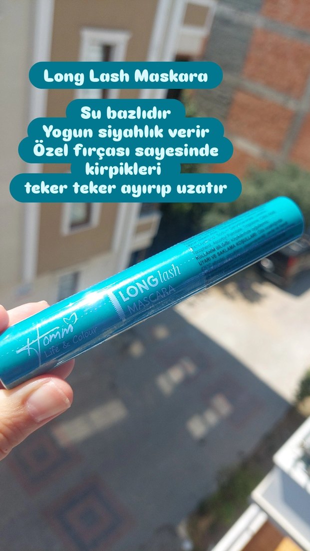 Turkuaz Long Lash maskara su bazlıdır, yoğun siyahlık verir. Özel fırçası kirpikleri tek tek ayırıp uzatır.