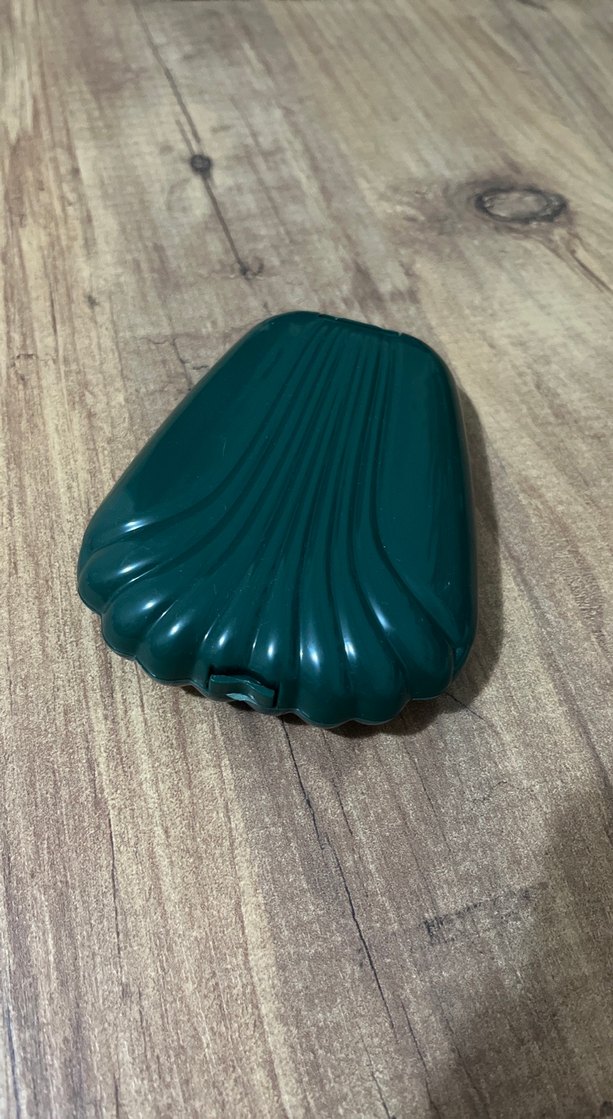 Kabuk desenli koyu turkuaz renkte makyaj fırçası. Ürün sıfır
