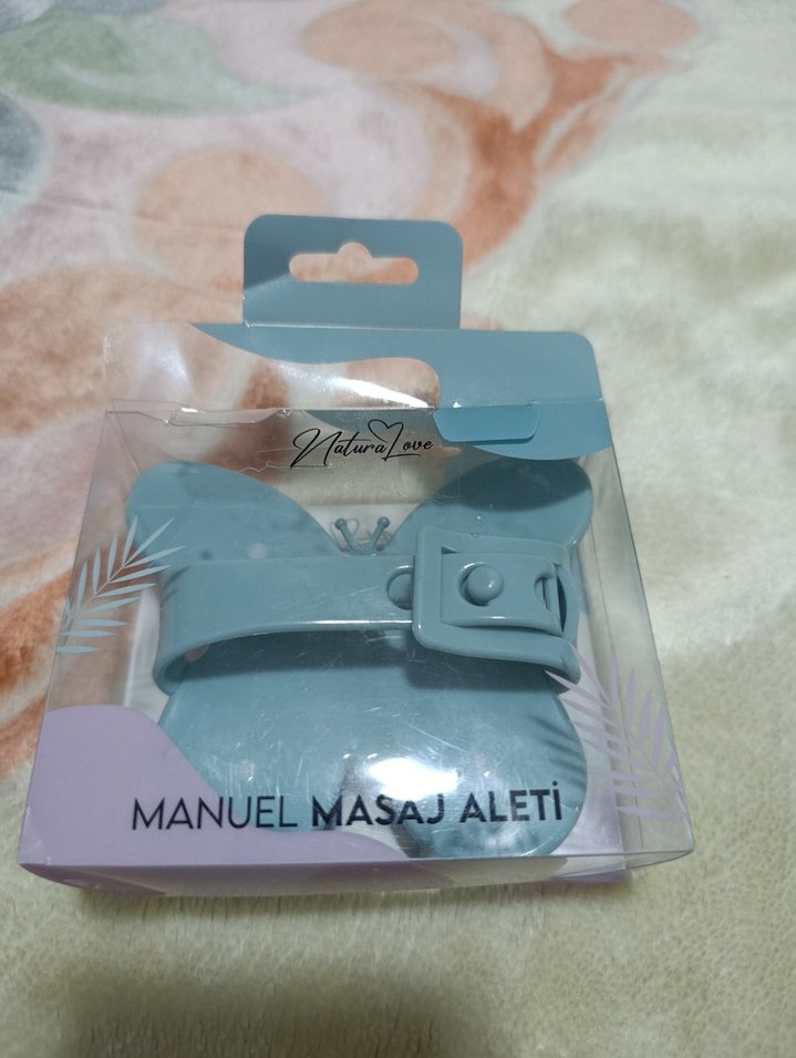 Turkuaz renkli, baskılı ve kısa boylu, vücuda oturan manuel masaj aleti rahatlama için kullanılır.