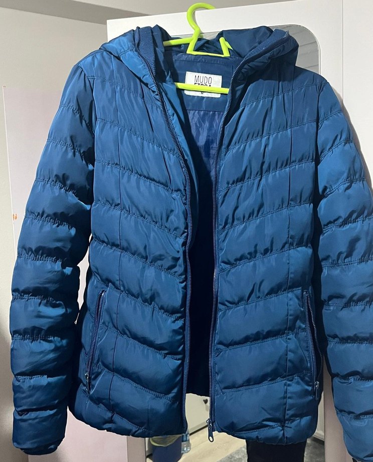 Kadınlar için turuncu, yüksek yakalı, uzun kollu, şişme kısa mont. Yumuşak ve sıcak kumaştan, günlük kullanıma uygun rahat stil.