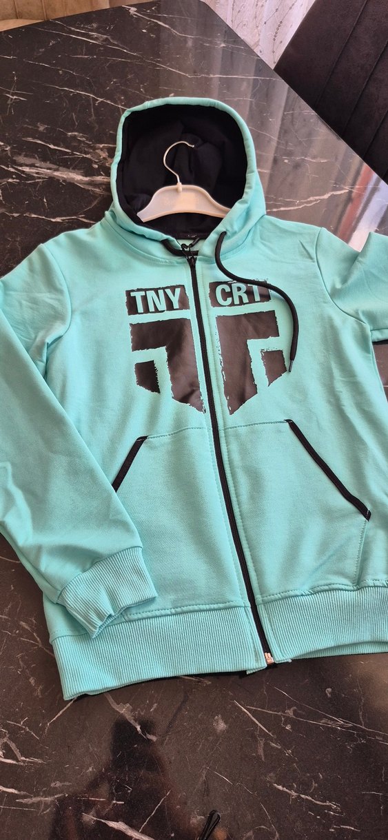 Pastel mavi, kapüşonlu, fermuarlı, uzun kollu, bol kesim kadın sweatshirt. Yumuşak ve sıcak dokusu ile günlük rahat sokak tarzına uygundur.