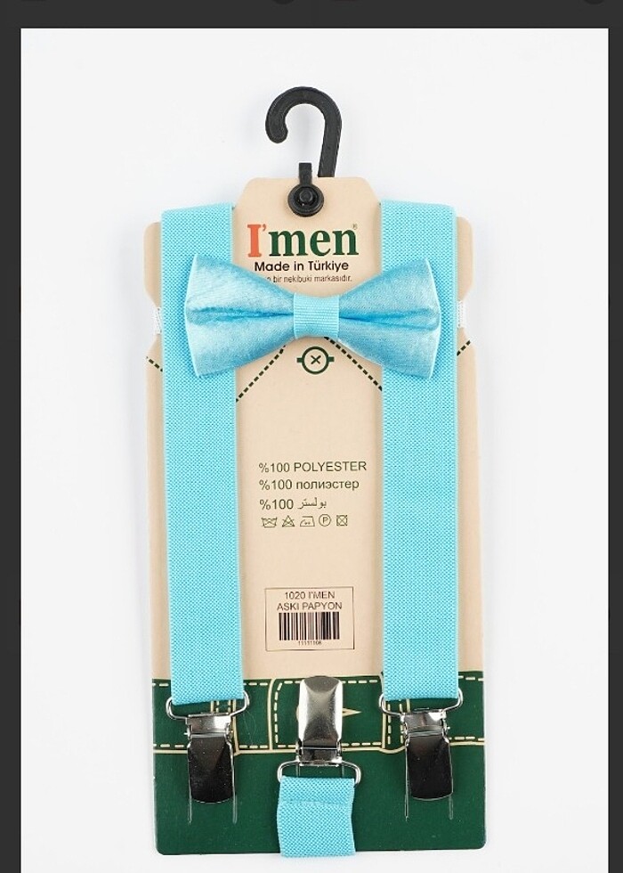 Turkuaz mavisi çocuk pantalon askısı ve papyon takım