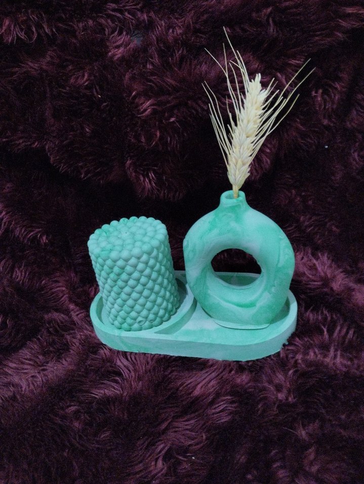 Turkuaz Mum ve Dekoratif Vazo Seti
