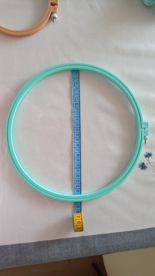 Nakış yaparken kumaşı gergin tutmak için kullanılan, metal kilitli pastel turkuaz renkli nakış kasnağı.