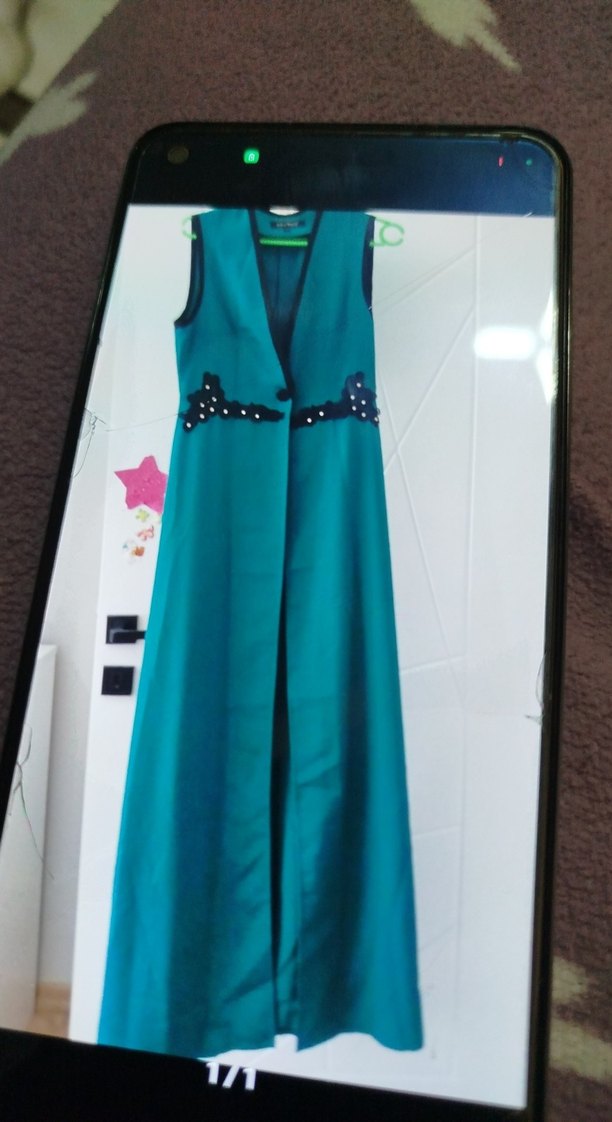 Turkuaz Nakışlı Kemerli Uzun Kadın Elbise yelek