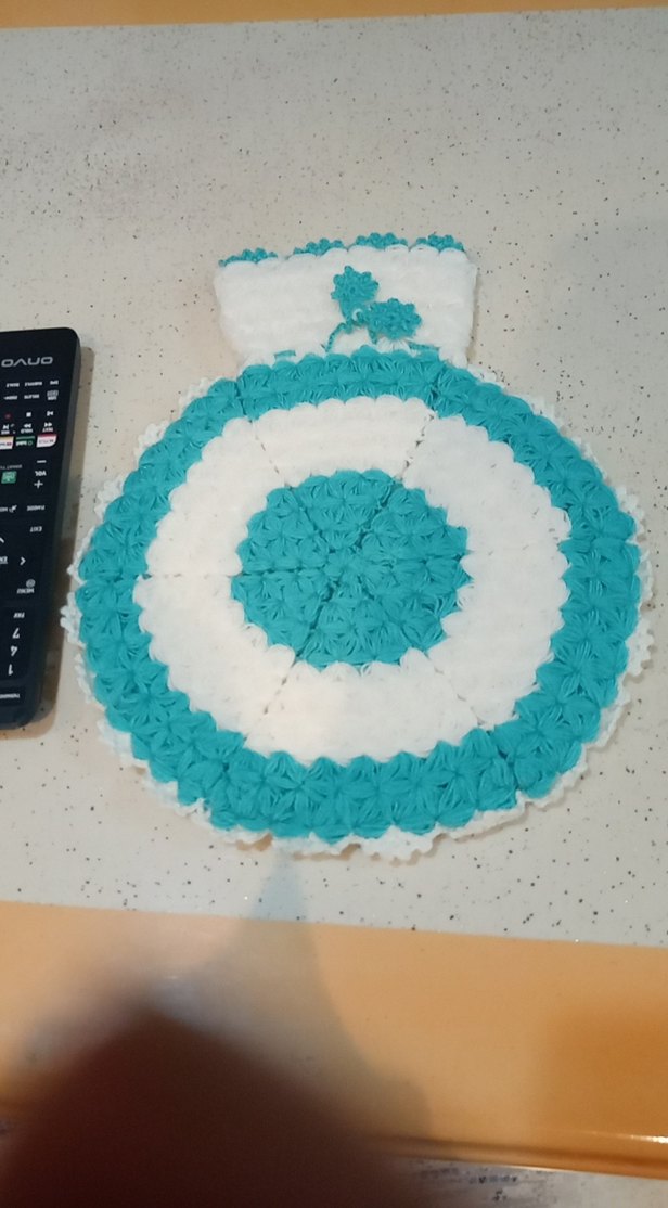 Turkuaz ve beyaz nakışlı, yuvarlak desenli lif