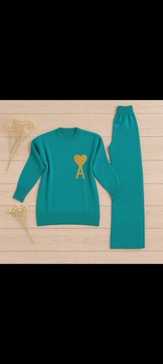 Bu bol kesim kadın eşofman takımı, uzun boy ve bisiklet yaka özelliklerine sahiptir. Yumuşak örgü kumaştan yapılmış, uzun kolludur ışıktan dolayi renkli turkuaz görünüyor ama koyu yeşil renginde nakışlıdır. Rahat sokak stili için uygundur.