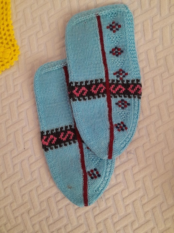 Turkuaz Nakışlı Örgü Kadın patik