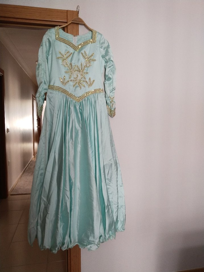 Turkuaz Nakışlı Uzun Kollu Vintage Kadın Elbise abiye kına nişan