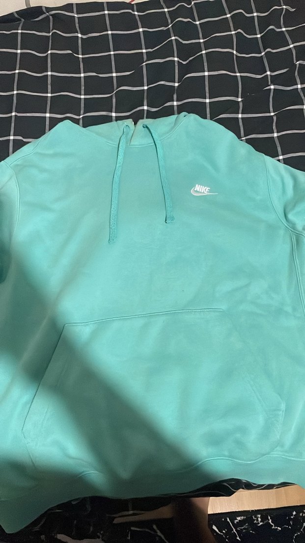 Turkuaz renkli Nike erkek sweatshirt, kapüşonlu ve uzun kolludur. Yumuşak fleece kumaştan üretilmiş, bol kesim ve fermuarlı detaylara sahiptir.