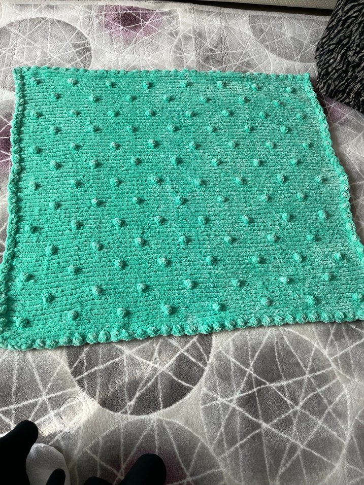 Renkli turkuaz örgü bebek battaniyesi, dokulu nokta deseniyle yumuşak ve rahat. 80x90