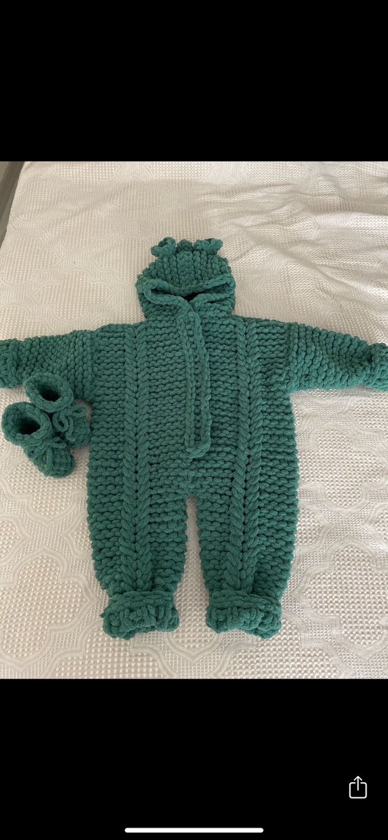 Turkuaz Örgü Bebek Tulumu ve Patik