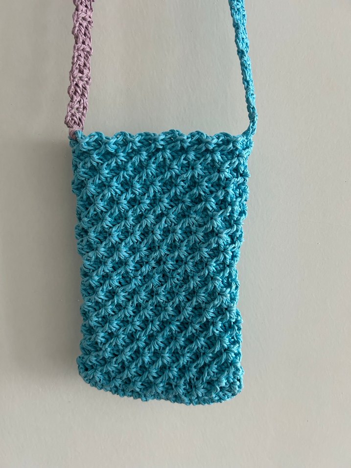 Turkuaz renkli, dantelli dokulu örgü kadın çapraz çanta. Bohem ve minimalist tarzda, günlük kullanıma uygun. Iphone plus telefonlar çok rahat sığmaktadır. %100 el yapımıdır.