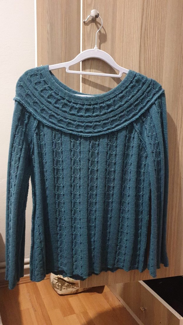 Almanya'dan alındı. Kumaşı yumuşak çok tatlı bi kazak yakası geniş Boy 45, iki koltukaltı arası 51