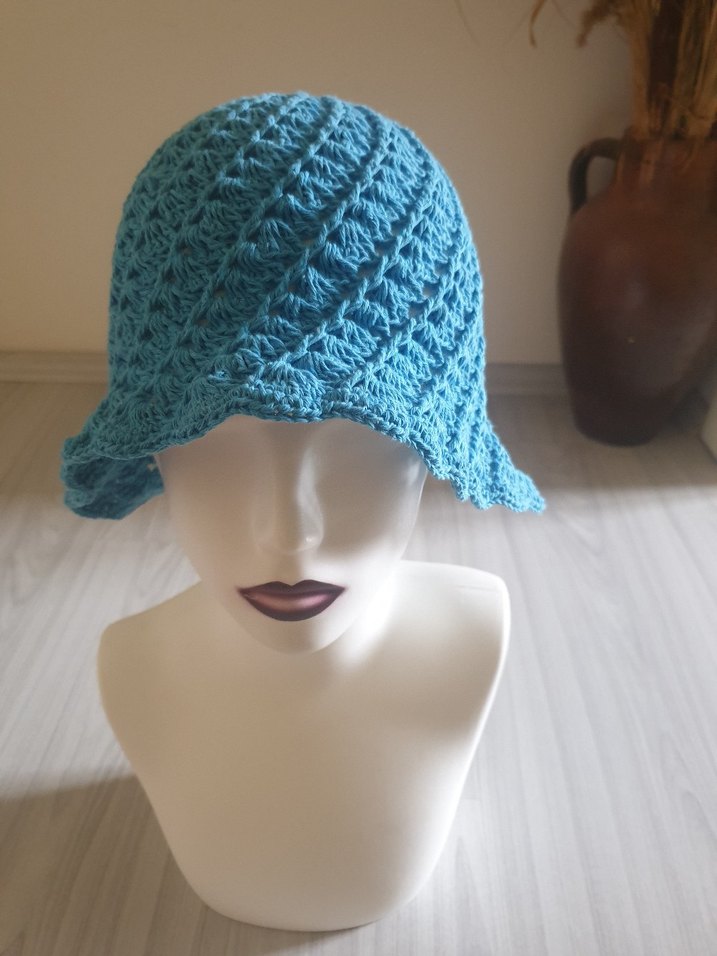Turkuaz Örgü Kadın Şapka 4 mevsimdir coton ip ile örülmüştür