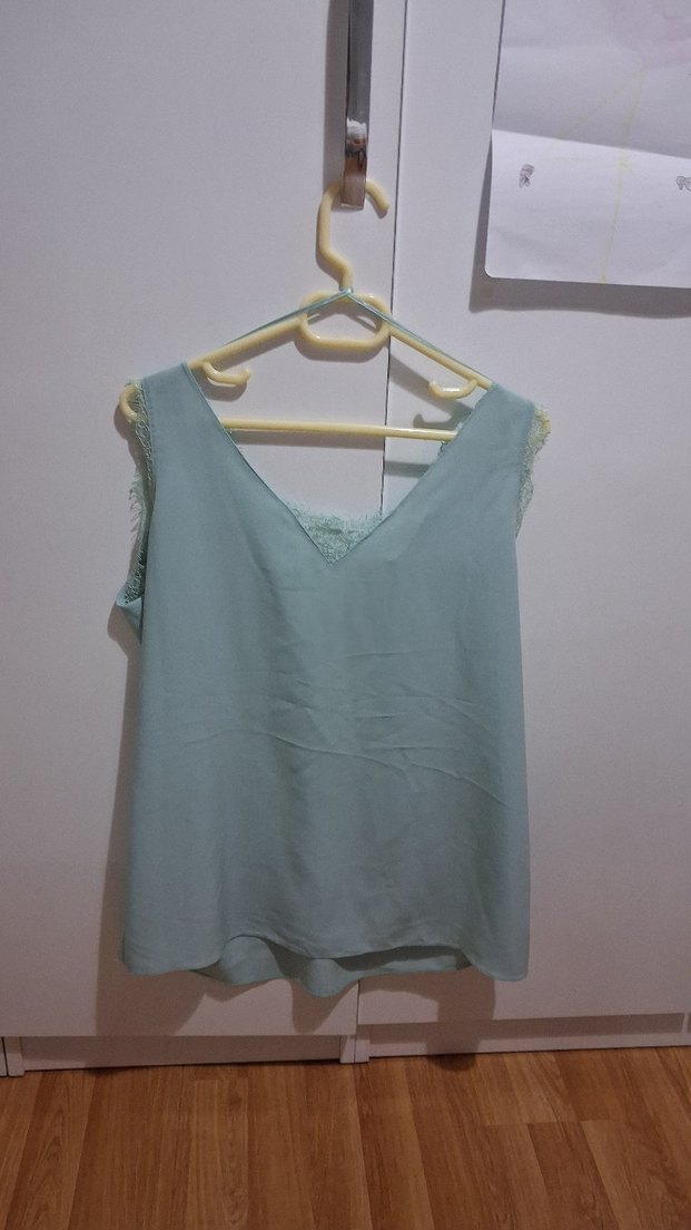 pamuklu kumaştan, kolsuz, V yakalı turkuaz bluz. Salaş kesimli, drapeli ve midi boyda, gündelik kullanıma uygun minimal ve normcore tarzda. S bedene uygundur. temiz üründür. hiçbir kusuru yada defosu yoktur