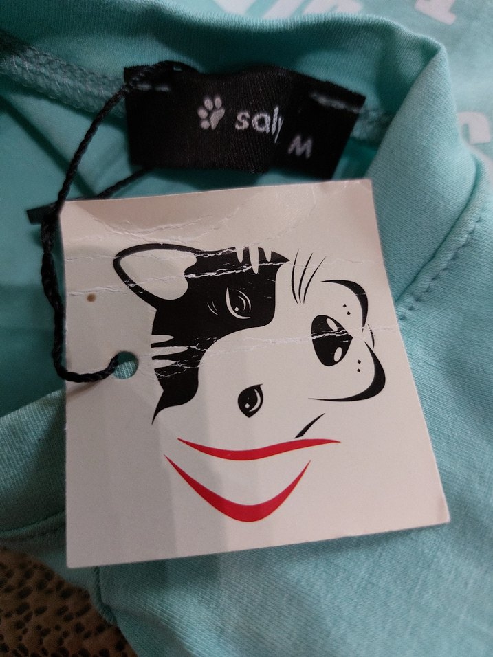 Turkuaz renkte, parlak görünümlü ve baskılı desenli kedi kopek kıyafeti. Velcro kapama özelliği bulunur. Beden M.