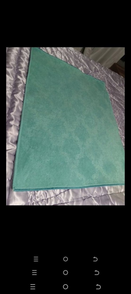 Turkuaz renkli, parlak yüzeyli ve desensiz banyo paspasıdır. Yumuşak dokusuyla kullanıma uygundur.