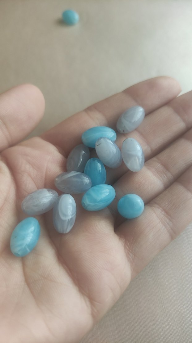 Pastel turkuaz renkli, oval şekilli kolye bileklik süsleme taşları, bileklik kolye tasarımlarını zenginleştirir.