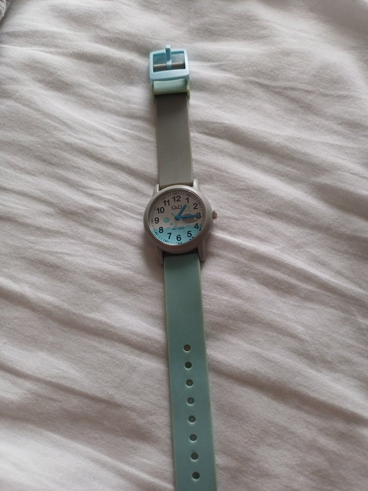 Pastel turkuaz renkte, tokalı kayışa sahip çocuk kol saati. Minimalist tasarımı ve sade kadranı ile dikkat çeker.⌚şu cekirmez