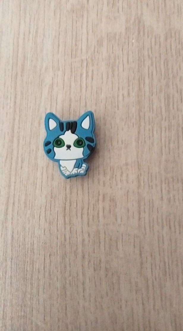 Yeşil gözlü, turkuaz pastel renkte, yumuşak tasarımlı sevimli kedi aksesuarı.