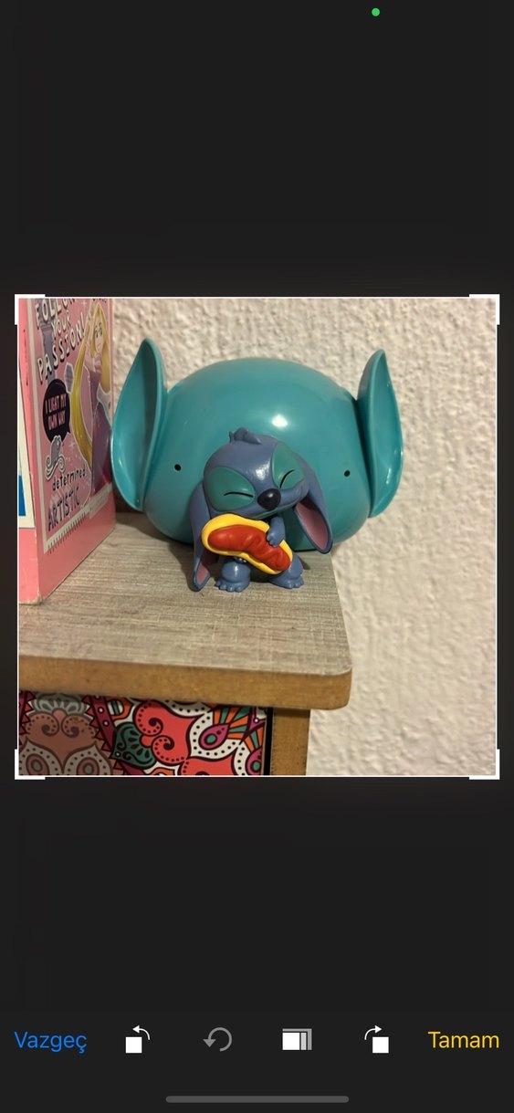 yunanistandan alindi koleksiyon oyuncagidir. Turkuaz pastel renkli Stitch figürü, sıcak köfteyi tutarken göz kırpıyor. Küçük, pürüzsüz yüzeyli koleksiyonluk oyuncak.