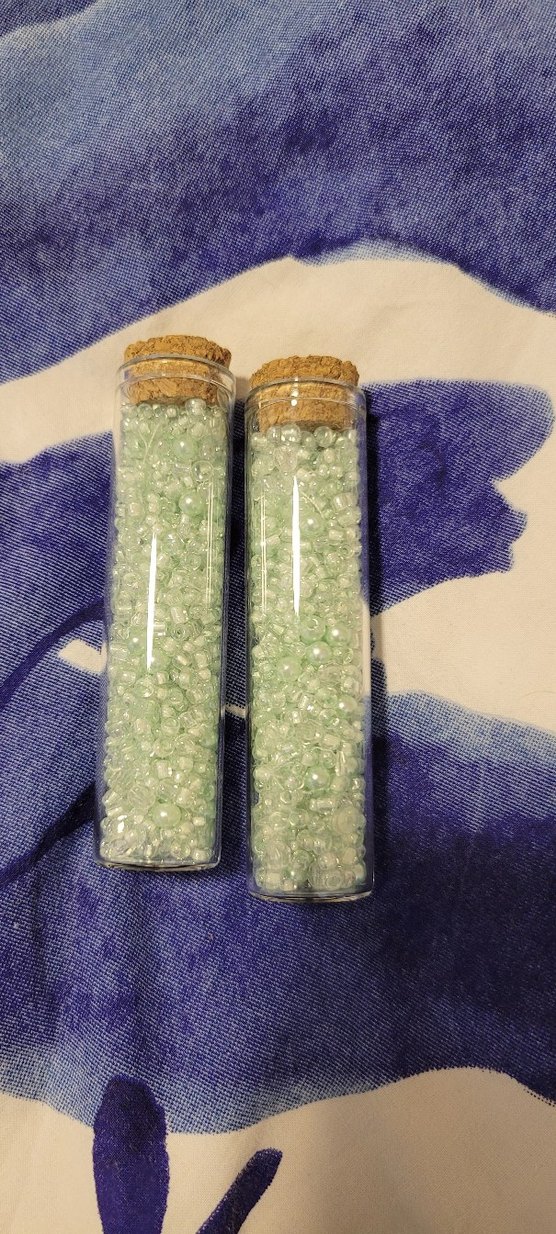 Cam tıpalı şişelerde pastel turkuaz tırnak süsleme boncukları. Tırnak tasarımlarına yumuşak ve zarif bir parlaklık katar.