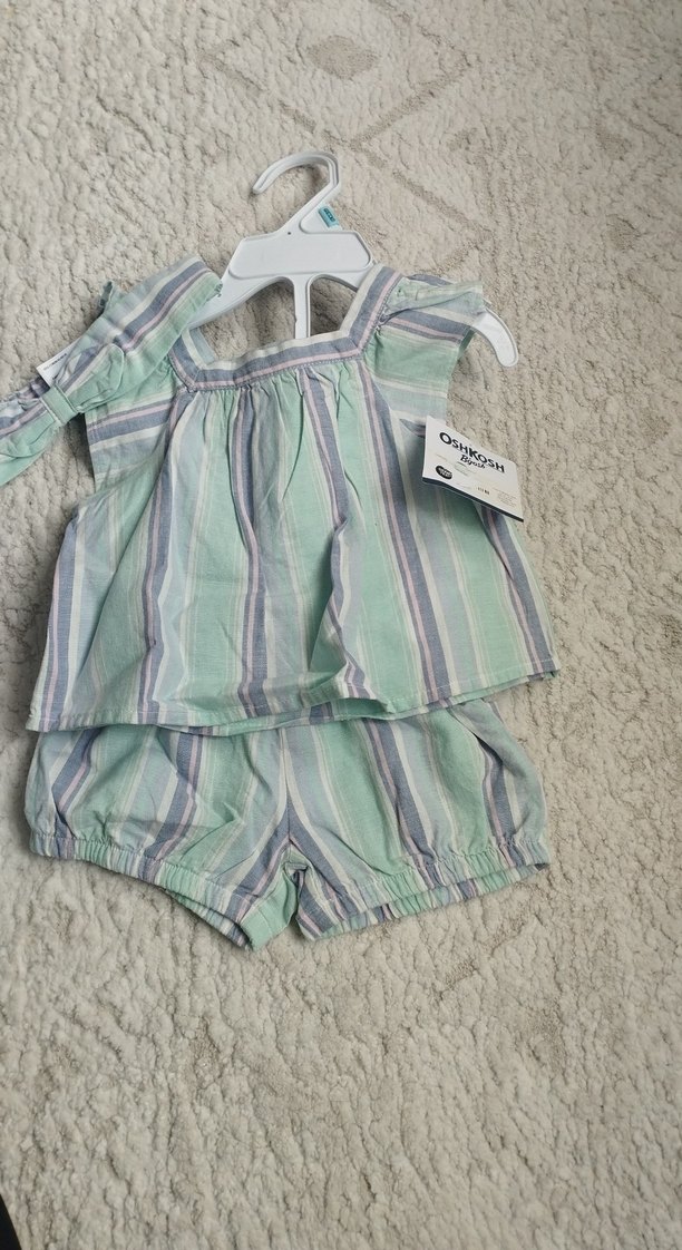 Turkuaz pastel tonlarda, piliseli kısa kollu üst ve şorttan oluşan bebek kız takımı, batik desenlidir.
