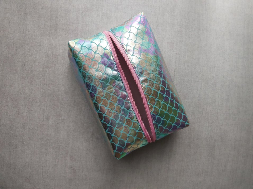 TurkuazRenk Deniz Kızı Pulu Desenli Kadın Makyaj Çantası-Premium