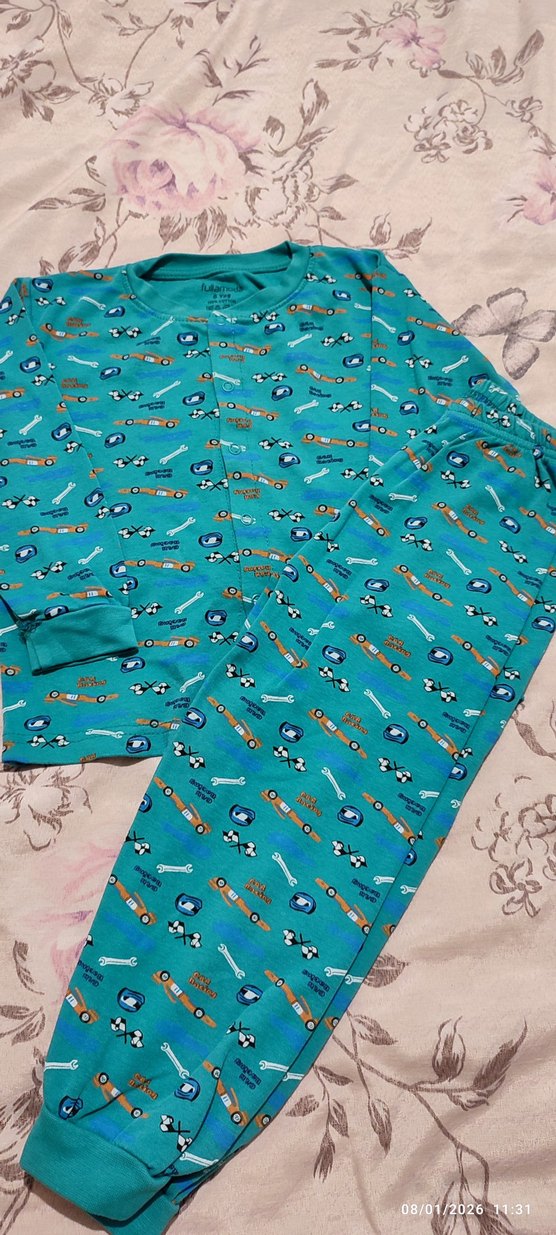 Turkuaz renkli, baskılı erkek pijama takımı uzun kollu, yuvarlakyakali olarak tasarlanmıştır. Rahat bir normal kesime sahiptir.