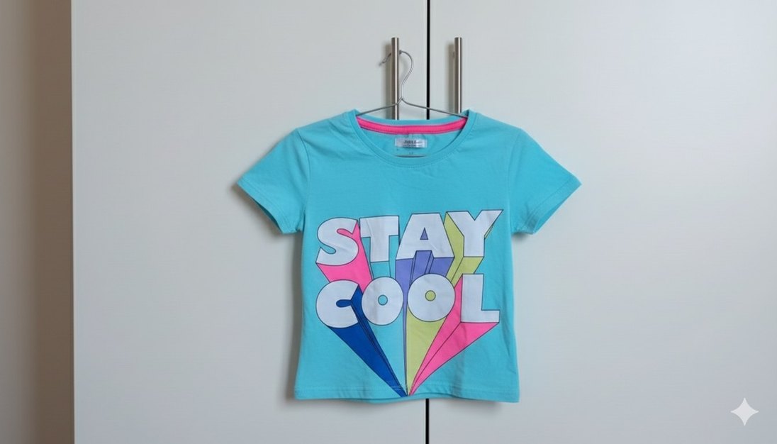 Turkuaz Renkli Baskılı Kız Tişörtü