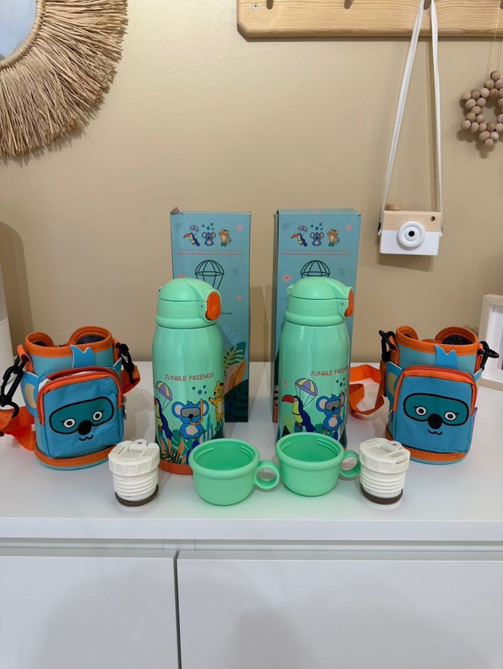 Pastel renkli turkuaz çocuk termos şişe, kolay içim için açılır kapak ve pipet içerir. Sıcak veya soğuk içecekleri korur. Elimde 2 adet mevcuttur tek adet fiyatıdır ister pipetli ister termos seklınde kullanmak için kapak mevcut nasıl kullanmak ıstıyorsanız o sekılde kullanabılırsınız tasıma kılıfı bardagıda mevcut 2 erkek cocugum oldugu için esyalarıyla bırlıkte tasıma cok zor o yuzden satıyorum