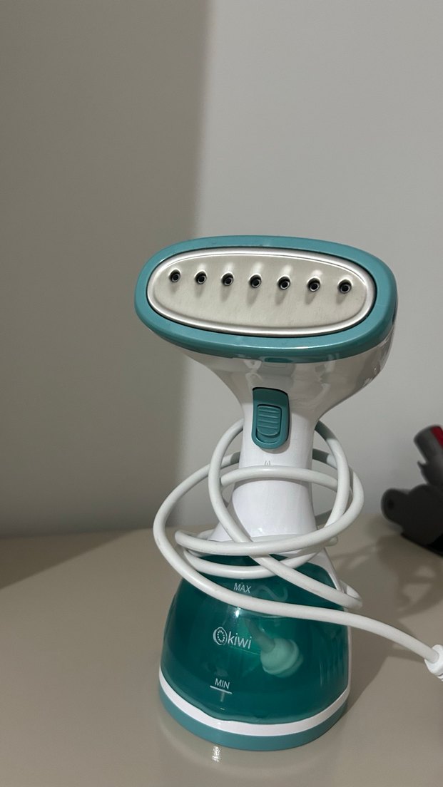 Turkuaz renkli Kiwi buharlı ütü, ayarlanabilir buhar seçenekleri ve kompakt tasarımıyla hafif ve kullanımı kolaydır.